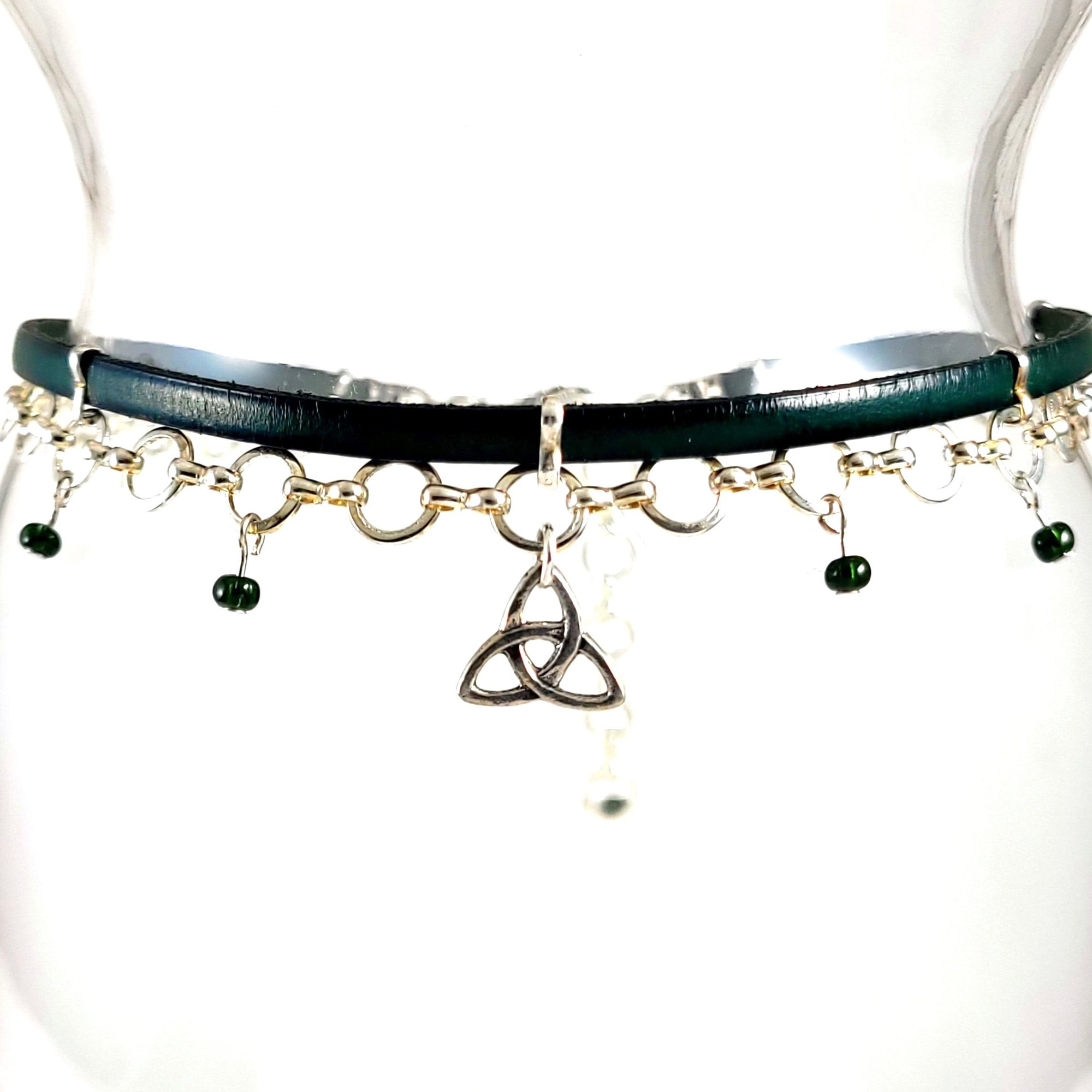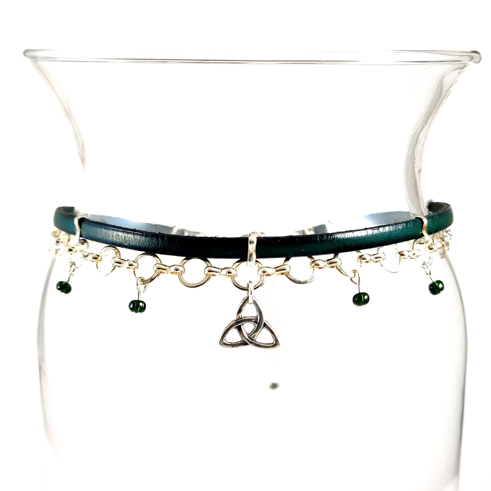Green Leather and Silver Choker with Sterling Celtic Knot